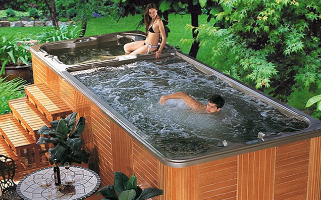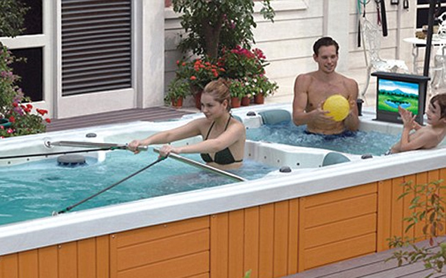 Το τζακούζι μετατρέπεται σε πισίνα κολύμβησης χάρη σε εκτοξευτήρες νερού που δημιουργούν την αίσθηση ρεύματος ώστε ο κολυμβητής να έχει την αίσθηση πως κινείται.