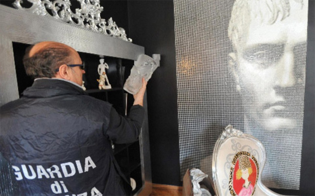 Μέσα στο πολυτελές, διώροφο, σπίτι βρέθηκαν δερμάτινοι καναπέδες, βελούδινες ταπετσαρίες, ρωμαϊκά πορτρέτα και αγάλματα, πανάκριβες συσκευές, καθώς και εκατοντάδες ενδύματα και υποδήματα αμύθητης αξίας.