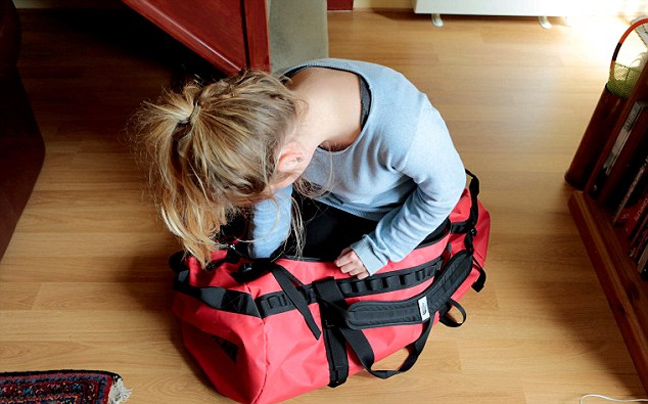 Η έφηβη που είναι λίγο πιο κοντή από τον Gareth κατάφερε όντως να μπει στο σάκο και να τον κλείσει.