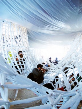Περισσότερα από 400 τετραγωνικά μέτρα κάλυψε η τεράστια αιώρα που έφτιαξαν 50 φοιτητές της Σχολής Τέχνης στην Καλιφόρνια με στόχο να εκτεθεί σε γκαλερί.