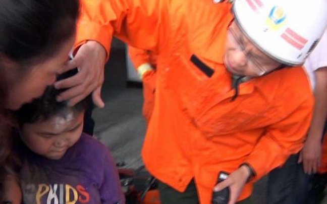 Οι άνδρες προσπάθησαν αρχικά να τον σύρουν έξω αλλά εγκατέλειψαν την προσπάθεια φοβούμενοι πως θα τραυματίσουν τον μικρό, ο οποίος ούρλιαζε από τον πόνο με τη παραμικρή κίνηση.