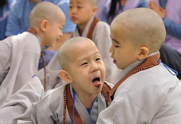 Βέβαια, αρκούσαν μερικά λεπτά για τους εννέα νεαρούς μοναχούς μέχρι να αρχίσουν τα πειράγματα ο ένας στον άλλο, και τα χαμόγελα να επιστρέψουν στα πρόσωπά τους!