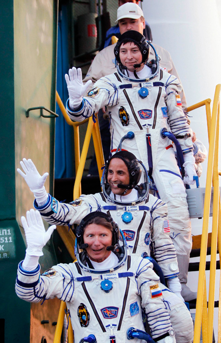 Ο αστροναύτης Joseph Acaba, ο βετεράνος κοσμοναύτης Gennady Padalka και ο Sergei Revin θα παραμείνουν στο Σταθμό για τεσσερισήμισι μήνες.
