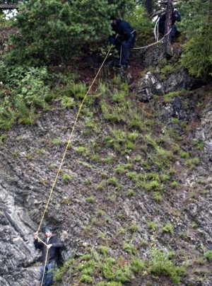 Οι διασώστες τράβηξαν το αγόρι με σκοινί από το σημείο όπου είχε κρυφτεί.