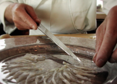 Τα μαχαίρια είναι πάντοτε αποστειρωμένα και ο σεφ δεν πρέπει να ακουμπήσει τίποτε άλλο, πριν και μετά το καθάρισμα του ψαριού. Αφού ανοίξει το ψάρι, αφαιρεί τα μέρη του που φέρουν το δηλητήριο: τα έντερα, το συκώτι και κυρίως τις ωοθήκες.