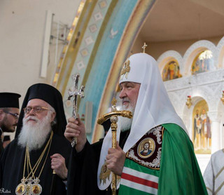 Στην πανηγυρική Δοξολογία που τελέστηκε σήμερα το απόγευμα στον Καθεδρικό Ναό της Αναστάσεως του Κυρίου, στα Τίρανα, χοροστάτησε ο Πατριάρχης Μόσχας και πασών των Ρωσιών Κύριλλος, ο οποίος πραγματοποιεί τριήμερη επίσημη επίσκεψη στην Αλβανία.