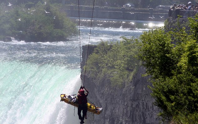 «Βουτιά» τουλάχιστον πενήντα μέτρων έκανε ένας παραλίγο αυτόχειρας στους καταρράκτες του Νιαγάρα. Για καλή του τύχη βγήκε ζωντανός από το νερό και έγινε ο τρίτος άνδρας που έχει ποτέ πηδήξει στους καταρράκτες χωρίς εξοπλισμό