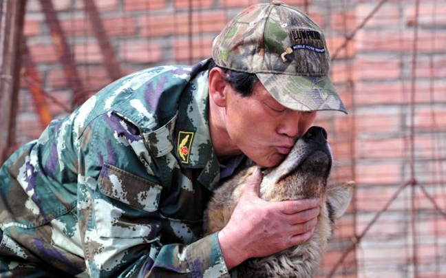 Ο Zhu φροντίζει 50 σκύλους και 10 λύκους στη εκπαιδευτική του βάση στο νότιο Urumqi, τη πρωτεύουσα της αυτόνομης περιοχής, Xinjiang Uygur.