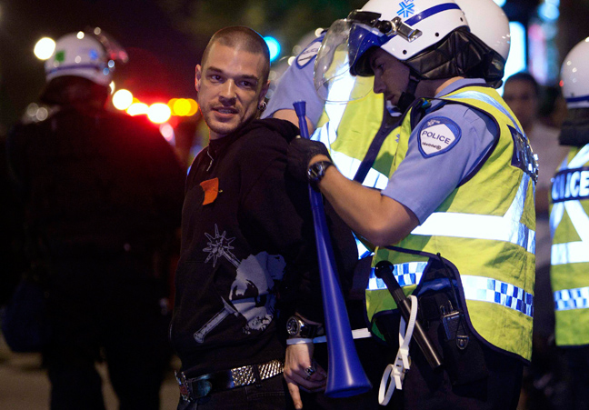 Τετρακόσιοι άνθρωποι συνελήφθησαν τις πρώτες πρωινές ώρες σήμερα στο Μόντρεαλ στο τέλος διαδήλωσης την οποία οι αρχές είχαν κηρύξει παράνομη. Ωστόσο επέτρεψαν να συνεχίζεται επί τρεις ώρες πριν αρχίσουν να σημειώνονται επεισόδια.
