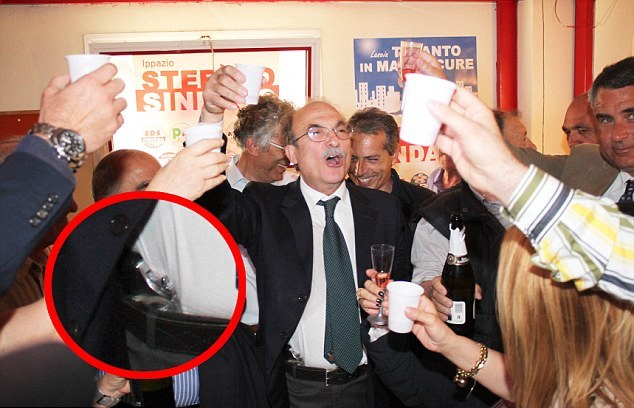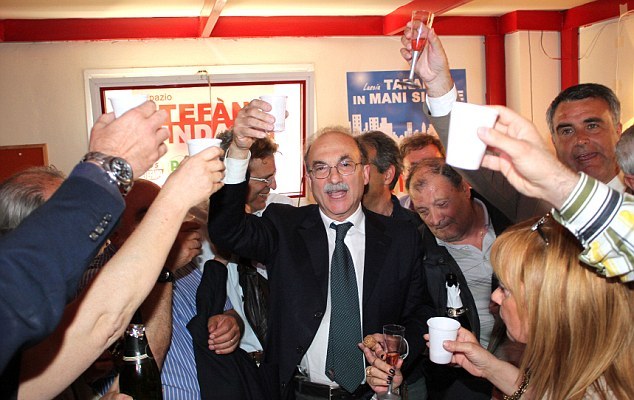 Ο δήμαρχος της πόλης Taranto στη νότια Ιταλία, Ippazio Stefano, γιόρτασε την επανεκλογή του μαζί με τους υποστηρικτές του και με τη σαμπάνια να ρέει άφθονη.