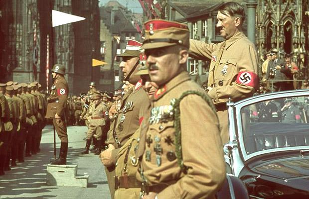 Οι έγχρωμες εικόνες προέρχονται από την συλλογή του Ούγκο Τζάεγκερ, προσωπικού φωτογράφου του Χίτλερ, που τον απαθανάτιζε από το 1936 μέχρι τις τελευταίες του ημέρες, το 1945. Ο Τζάεγκερ έκρυψε χιλιάδες αρνητικά σε μία δερμάτινη τσάντα στο τέλος του πολέμου. Η τσάντα βρέθηκε από έξι Αμερικάνους στρατιώτες όταν έψαξαν το σπίτι του κοντά στο Μόναχο, ωστόσο οι ίδιοι έδειξαν περισότερο ενδιαφέρον για ένα μπουκάλι κονιάκ που επίσης υπήρχε μέσα στην τσάντα.