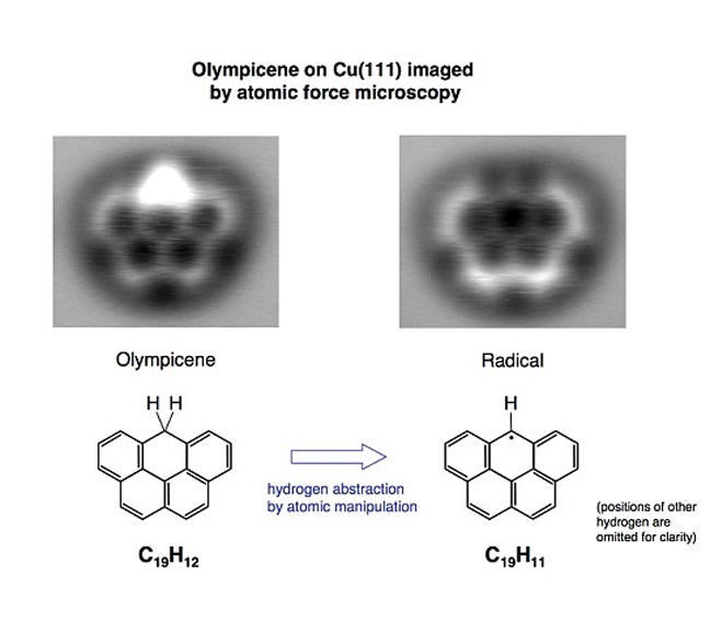 Ακόμα και η φωτογράφιση του αποτελούσε μια πρόκληση για το εργαστήριο, καθώς το ηλεκτρονικό μικροσκόπιο δεν μπορούσε να το συλλάβει. Η χημική δομή του αναλύθηκε με πρωτοφανή ανάλυση, μέσω ενός μικροσκοπίου ατομικής δύναμης. Το πλάτος του «Olympicene» υπολογίσθηκε στα 1,2 nanometer.
