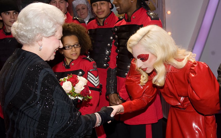 7 Δεκεμβρίου 2009: Η βασίλισσα συναντά τη Lady Gaga και το χορευτικό συγκρότημα Diversity.