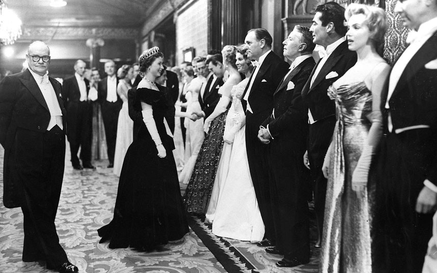 1956: Η βασίλισσα συναντά αστέρες του κινηματογράφου μεταξύ των οποίων ήταν και η Μέριλιν Μονρόε, στη βασιλική πρεμιέρα της ταινίας «The Battle of the River Plate».