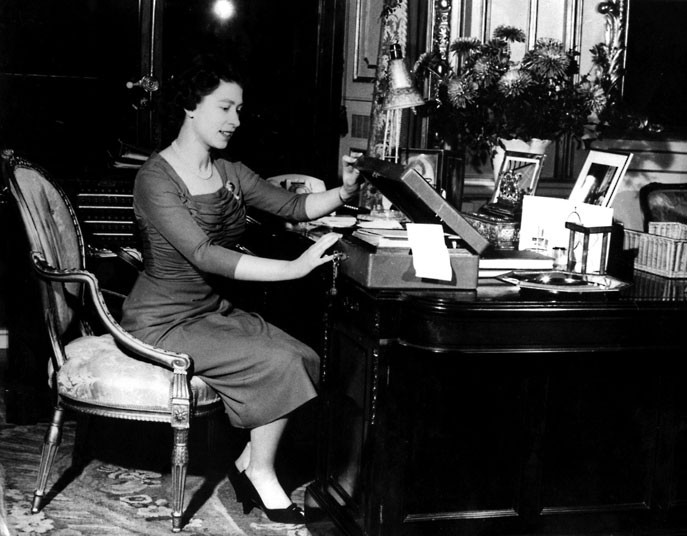 1959: Η βασίλισσα στο γραφείο της στα ανάκτορα του Μπάκινγχαμ.
