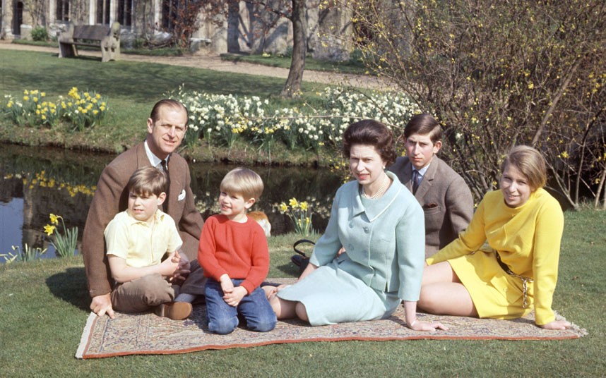 1968: Η βασίλισσα και ο πρίγκιπας Φίλιππος μαζί με τα τέσσερα παιδιά τους, τον πρίγκιπα Andrew, Edward, Charles και την πριγκίπισσα Anne, απολαμβάνουν τη λιακάδα στο Windsor.