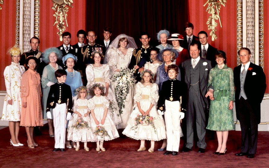 29 Ιουλίου 1981: Η βασίλισσα και μέλη της βασιλικής οικογένειας φωτογραφίζονται μετά τον γάμο του πρίγκιπα Καρόλου με την πριγκίπισσα Νταϊάνα.