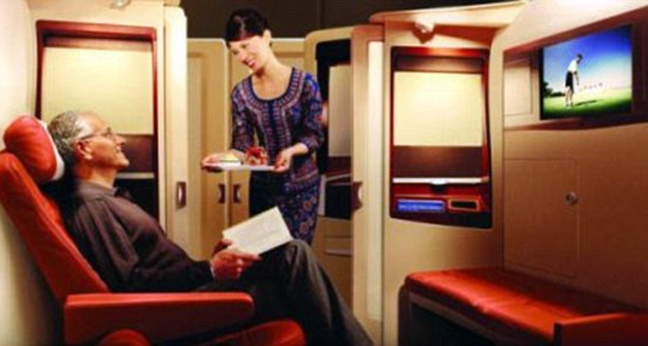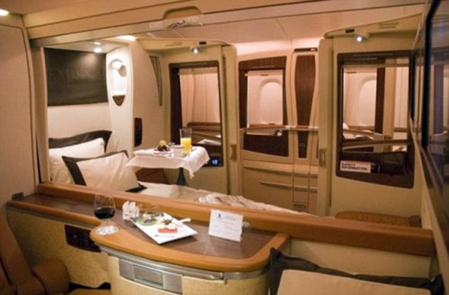 Αν δεν υπολογίζετε το κόστος, θα το ευχαριστηθείτε: θα έχετε την προσωπική σας καμπίνα με χειροποίητη ιταλική πολυθρόνα που ανοίγει και τηλεόραση 23 ιντσών.
