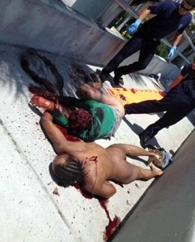 Στη φωτογραφία ο Rudy Eugene κείτεται νεκρός μέσα σε μία λίμνη αίματος δίπλα στο θύμα του, τον άστεγο Ronald Poppo, στον οποίο επιτέθηκε ενώ κοιμόταν.