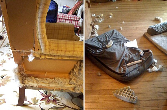 Το υπερκινητικό Staffordshire Bull Terrier δεν αντέχει την απουσία της Claire και όταν έμενε μόνο του στο σπίτι απλά κατέστρεφε ό,τι μπορούσε, αφήνοντας τη 19χρονη με ζημιές ύψους σχεδόν 1900 ευρώ.