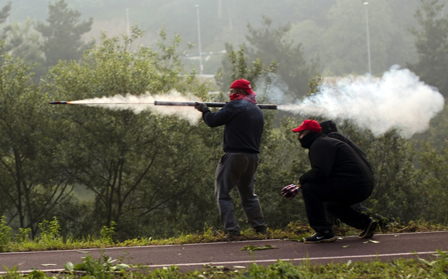 Με αυτοσχέδιες ρουκέτες και ασπίδες αποφάσισαν να «υποδεχθούν» οι Ισπανοί ανθρακωρύχοι τα νέα μέτρα λιτότητας και τις αστυνομικές δυνάμεις, που κατέφτασαν στην πόλη Οβιέδο, για να αντιμετωπίσουν την εκτροχιασμένη κατάσταση.