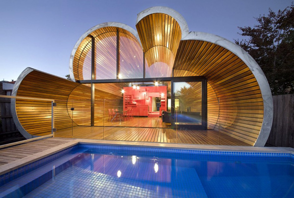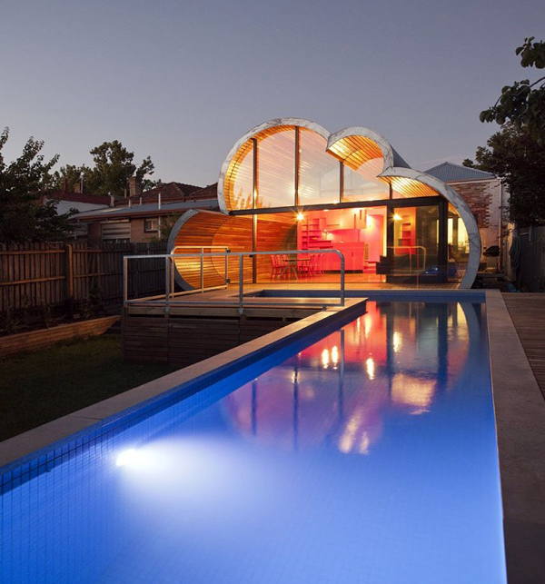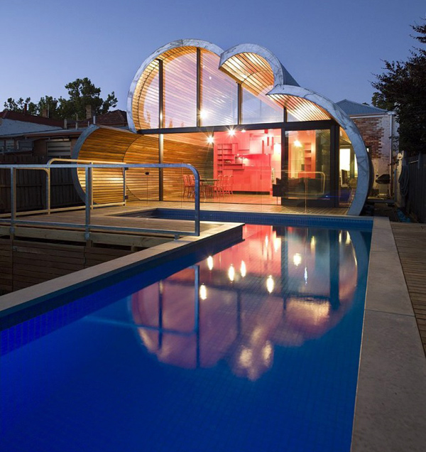 Πρόκειται για μια ιστορική βίλα στη Μελβούρνη που έχει τροποποιηθεί κατάλληλα. Το «συννεφόσπιτο» κατασκευάστηκε στην πίσω αυλή, για να έχει πρόσβαση κατευθείαν στην πισίνα. Η γεωμετρία του είναι τόσο παιχνιδιάρικη που θυμίζει πράγματι σύννεφο.