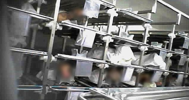 Συγκεκριμένα, το προσωπικό μεταχειρίζεται τα πτώματα «σαν αποσκευές», καθώς τα τοποθετεί σε ράφια, σε μια αποθήκη που θυμίζει ταινία τρόμου. Σύμφωνα με την έρευνα, τέσσερα φέρετρα έπρεπε να τοποθετηθούν στο ίδιο φορτηγό, αλλά επειδή δεν χωρούσαν, οι εργαζόμενοι αφαίρεσαν το επάνω μέρος από το ένα, με αποτέλεσμα να αγγίζουν τα υπόλοιπα πάνω στο πρόσωπο μιας νεκρής γυναίκας.