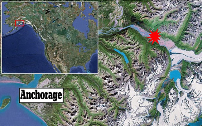 Οι αρχές αποκάλυψαν σήμερα πως το σημείο είχε ανακαλυφθεί στις αρχές του μήνα στον παγετώνα Knik κοντά στο Anchorage.