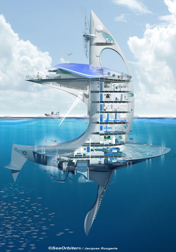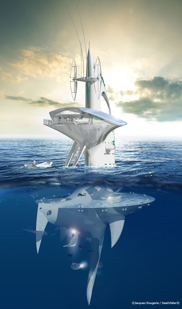 Το SeaOrbiter θα ταξιδεύει στους ωκεανούς του πλανήτη πραγματοποιώντας επιστημονικές εξερευνήσεις. Σχεδιασμένο από τον γάλλο αρχιτέκτονα, Jacques Rougerie, θα είναι το πρώτο κάθετο σκάφος με ύψος 52 μέτρων.