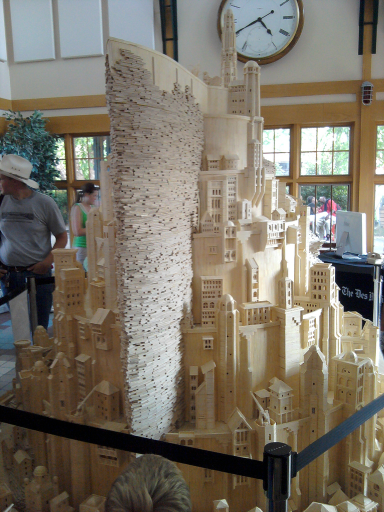 Το παρακάτω γλυπτό από σπίρτα απεικονίζει τη φανταστική πόλη Minas Tirith από την τριλογία του Tolkien, «The Lord of the Rings». Ο δημιουργός Patrick Acton χρειάστηκε 420.000 σπίρτα και περίπου τρία χρόνια για να το κατασκευάσει, ενώ θεωρείται ένα από τα μεγαλύτερα και λεπτομερέστερα γλυπτά από σπίρτα που έχουν γίνει μέχρι σήμερα!