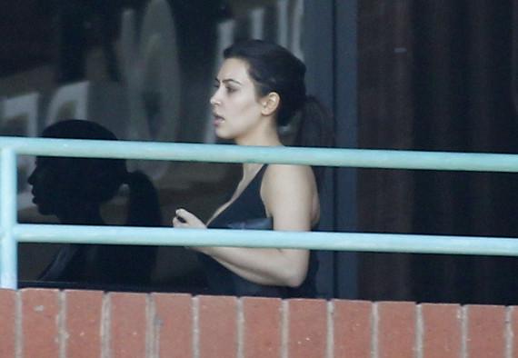 Η Κιμ βγήκε χωρίς μακιγιάζ και με εμφάνιση άκρως αθλητική από το κέντρο αισθητικής. Με ροζ αθλητικά παπούτσια και το κινητό στο χέρι δείχνει πολύ διαφορετική από ότι την έχουμε συνηθίσει.