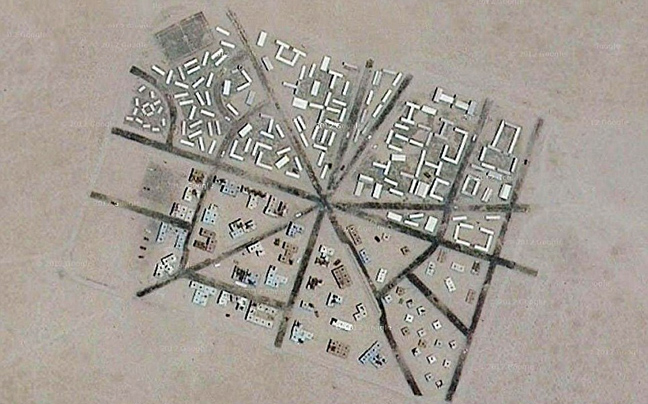 Οι φωτογραφίες που ακολουθούν δείχνουν την έρημη πόλη που σχεδιάστηκε για να καταστραφεί με 178 κτήρια φτιαγμένα από εμπορευματοκιβώτια.