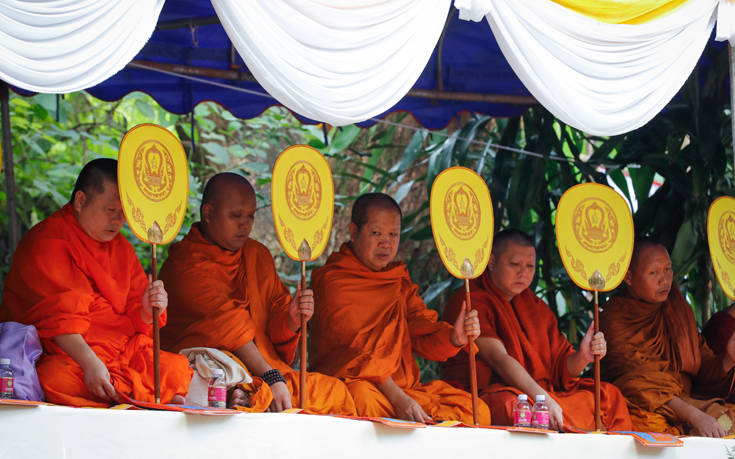 Χορευτές χορεύουν υπό τους ήχους της παραδοσιακής μουσικής με κεράκια να καίνε και ντόπιους κατοίκους να προσφέρουν φρούτα στα πνεύματα του σπηλαίου: αυτή ήταν η εικόνα σήμερα κοντά στον χώρο όπου βρίσκεται το σπήλαιο στο οποίο παρέμειναν εγκλωβισμένοι υπό 17 ημέρες 12 αγόρια με τον προπονητή του ποδοσφαίρου τους μέχρι που διασώθηκαν σώοι και αβλαβείς όλοι χάρις στη διεθνή ομάδα σπηλαιοδυτών και διασωστών.
