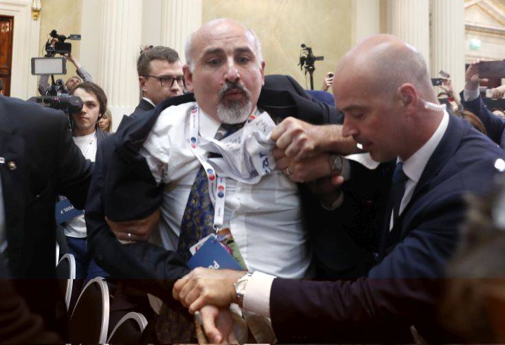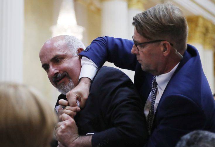 Όπως αναφέρει και το Αθηναϊκό Πρακτορείο, οι άνδρες των υπηρεσιών ασφαλείας τον απομάκρυναν αμέσως από την αίθουσα.