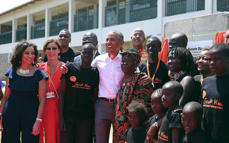 Ο Ομπάμα και η αδελφή του υποδέχτηκαν τα παιδιά στο κέντρο και συναντήθηκαν με τον Πρόεδρο της Κένυας.