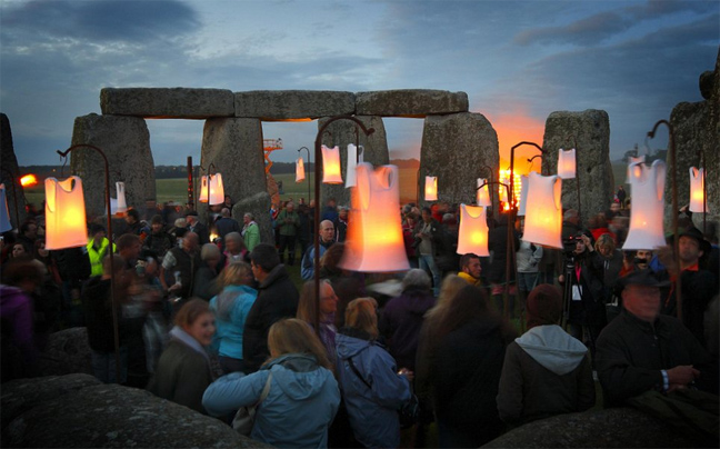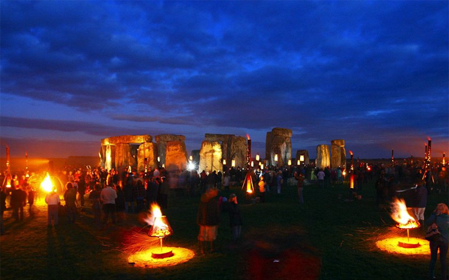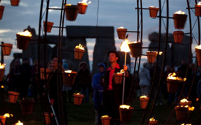 Με τη δύση του ηλίου, το νεολιθικό μνημείο του Στόουνχετζ στην Αγγλία, φωτίστηκε με «πύρινα» γλυπτά και κέρινα μονοπάτια για να σηματοδοτήσει τους επερχόμενους Ολυμπιακούς Αγώνες του Λονδίνου. Η εκδηλώσει θα διαρκέσει τρεις ημέρες και ξεκίνησε την Τρίτη.