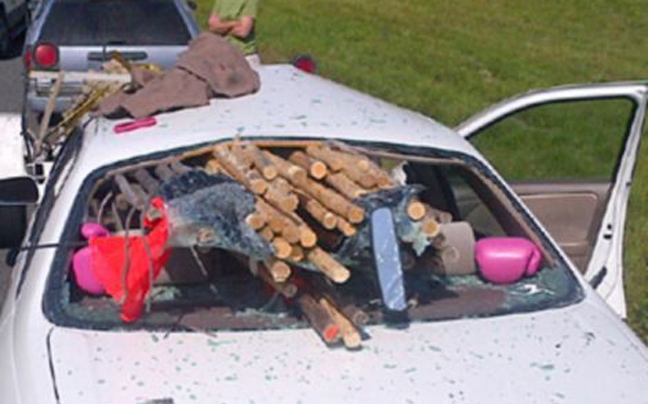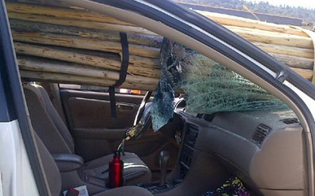 Από σίγουρο θάνατο γλίτωσε μια γυναίκα οδηγός, όταν το αυτοκίνητο της συγκρούστηκε με ένα τρέιλερ που μετέφερε ξύλινους στύλους στην εθνική οδό της Ουάσιγκτον. Οι κορμοί των δέντρων διαπέρασαν ολόκληρο το αυτοκίνητο και έφτασαν μέχρι το οπίσθιο παρμπρίζ.