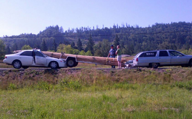 Σύμφωνα με το Komo News, ένα ζευγάρι οδηγούσε το station wagon, το οποίο μετέφερε στο τρέιλερ κορμούς δέντρων – για τη κατασκευή των κλασικών κωνικών σκηνών των Ινδιάνων. Ο οδηγός αναγκάστηκε να επιβραδύνει, όταν ένα φορτηγό είχε ακινητοποιηθεί και εμπόδιζε τη κυκλοφορία στην εθνική οδό.
