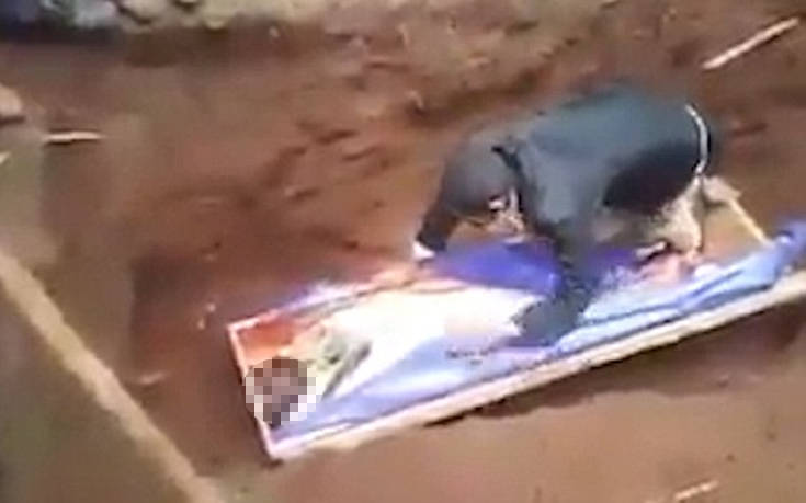 Σε ένα βίντεο που είδε το φως της δημοσιότητας φαίνεται ο άνδρας να είναι πάνω από το φέρετρο και να φωνάζει στο νεκρό να «ξυπνήσει» αρκετές φορές, φτάνοντας μάλιστα στο σημείο να ξαπλώσει πάνω του.
