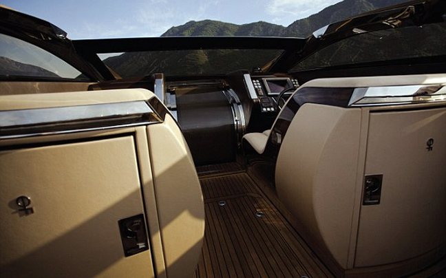 Έχει μεγάλο κατάστρωμα για ηλιοθεραπεία ενώ τα καθίσματα είναι καλυμμένα με δέρμα της Boxmark Xtreme Maritime που είναι ανθεκτικό στο νερό και τις ακτίνες του ήλιου.