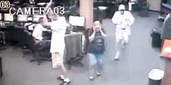 Η κάμερα ασφαλείας κατέγραψε όλα όσα συνέβησαν στο Palms Internet Cafe, με τους δύο δράστες να μπαίνουν στο χώρο και να κραδαίνουν όπλα απειλώντας τους παρευρισκόμενους.