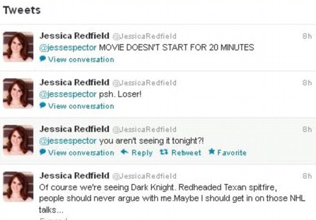 Λίγα λεπτά πριν ο 24χρονος James Holmes ανοίξει πυρ μέσα στην κινηματογραφική αίθουσα η Jessica έγραψε στο twitter της πόσο ενθουσιασμένη ήταν που θα έβλεπε την ταινία.