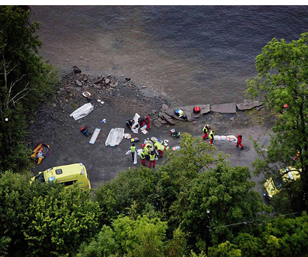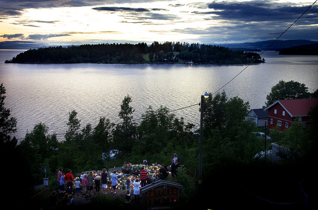 Δεκάδες άνθρωποι κατέκλυσαν το μικρό νησί, που βρίσκεται περίπου 40 χιλιόμετρα μακριά από το Όσλο, κατέθεσαν λουλούδια και προσευχήθηκαν για τα θύματα.