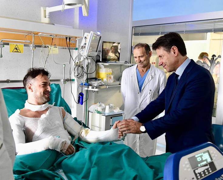 Μάλιστα, τον νεαρό αστυνομικό, που νοσηλεύεται με αρκετά τραύματα, επισκέφθηκε ο Ιταλός πρωθυπουργός, Τζουζέπε Κόντε, για να τον συγχαρεί για το γεγονός ότι κατάφερε να αποτρέψει μια μεγαλύτερη τραγωδία.