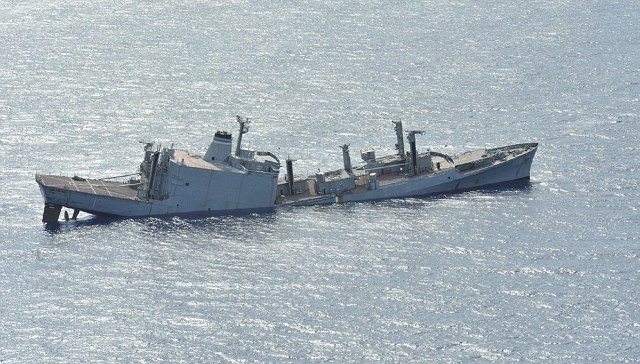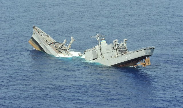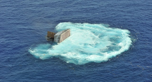 Το 12.100 τόνων Kilauea χτυπήθηκε από τον πύραυλο που εκτόξευσε το υποβρύχιο ακριβώς κάτω από τη γέφυρα και στη συνέχεια έσπασε στα δύο… προτού βυθιστεί εντελώς 40 λεπτά αργότερα.