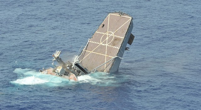 Τη στιγμή που ένα πλοίο του ναυτικού των ΗΠΑ βυθίζεται, «χτυπημένο» από ένα αυστραλιανό υποβρύχιο κατά τη διάρκεια στρατιωτικής άσκησης στα ανοιχτά του Ειρηνικού Ωκεανού κατέγραψαν οι κάμερες.
