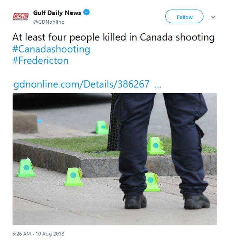Ένα αιματηρό περιστατικό βρίσκεται σε εξέλιξη στην πόλη Φρέντρικτον στον ανατολικό Καναδά. Όπως είχε ανακοινώσει η τοπική αστυνομία μπορούσε να επιβεβαιώσει τουλάχιστον 4 νεκρούς από πυροβολισμούς.