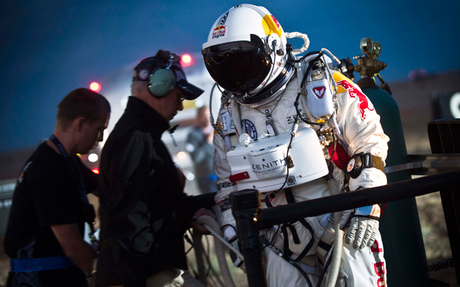 Ο Αυστριακός έκανε ελεύθερη πτώση από αερόστατο, φορώντας ειδική στολή με παροχή οξυγόνου. Κατά τη διάρκεια της πτώσης έφτασε σε ταχύτητα τα 805 χιλιόμετρα ανά ώρα, επιχειρώντας χωρίς να τα καταφέρει, να σπάσει το ρεκόρ ταχύτητας. Προσγειώθηκε με ασφάλεια στην έρημο κοντά στο Ρόσγουελ του Νέου Μεξικού.