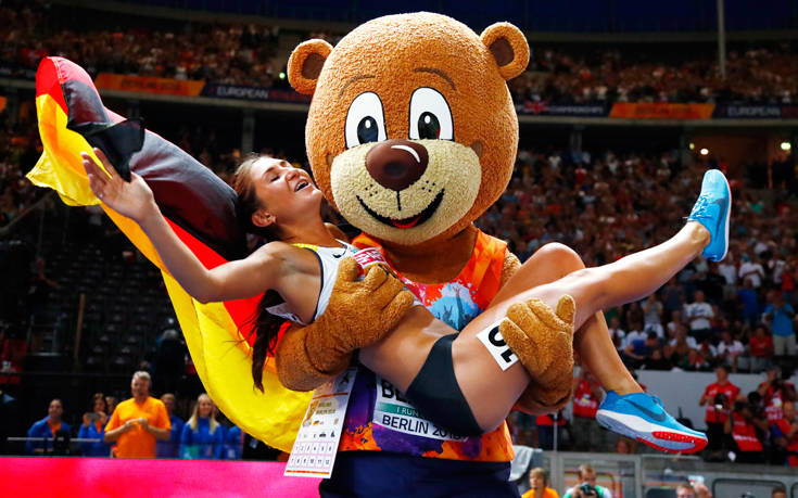 Βερολίνο, Γερμανία. Η χαρά για το χρυσό στα χέρια της μασκότ