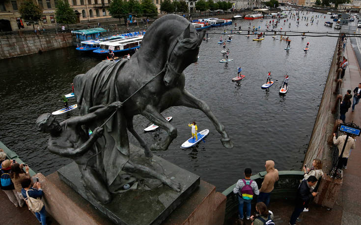 Το φεστιβάλ SUP στον ποταμό Φοντάνκα της Αγίας Πετρούπολης προσφέρει σπάνιες εικόνες για το αστικό περιβάλλον